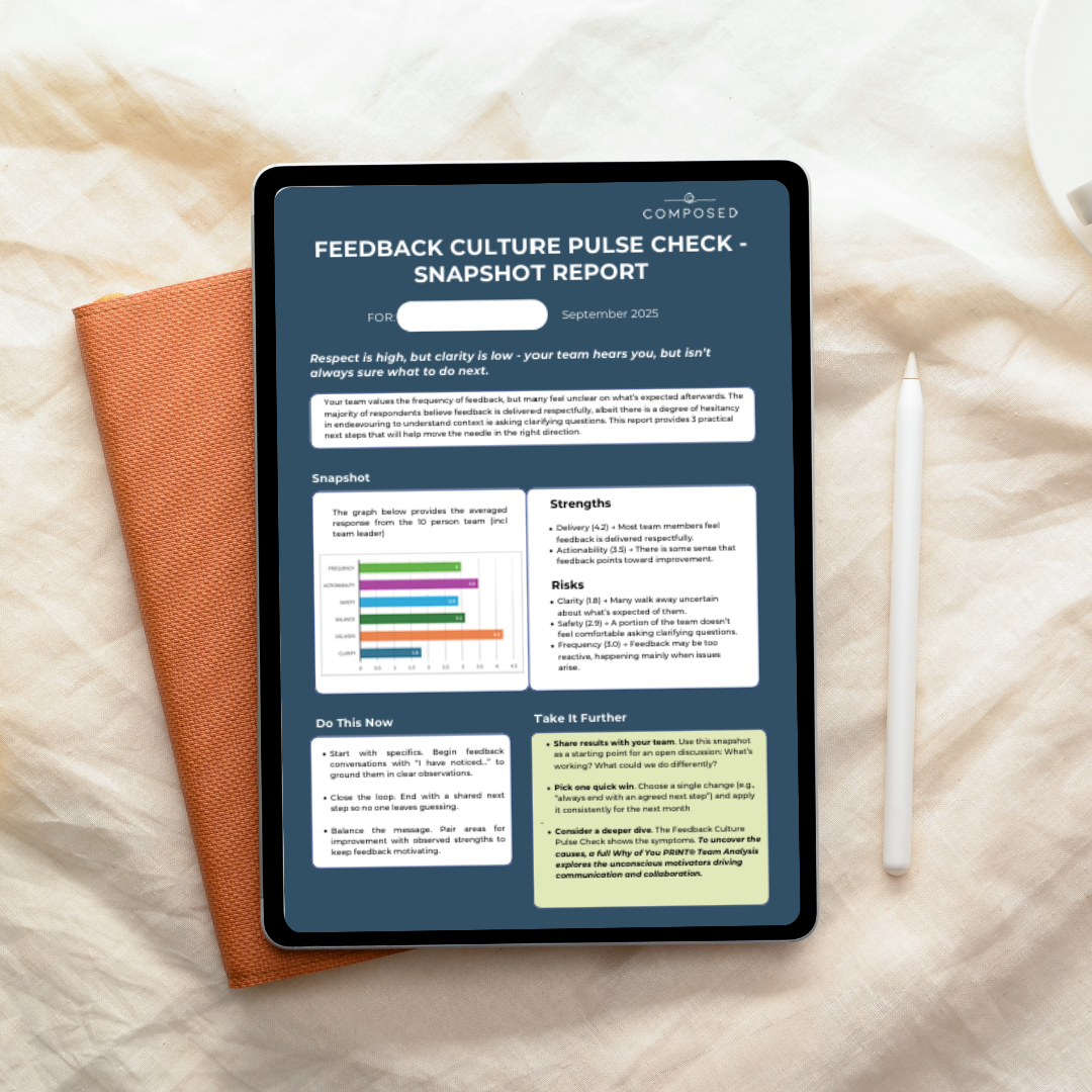 This program combines individual PRINT® profiling with team workshops and follow-up support to create a culture of understanding, alignment, and accountability. Ideal for team leaders who want to lead with more insight and empathy—and for teams ready to grow together.